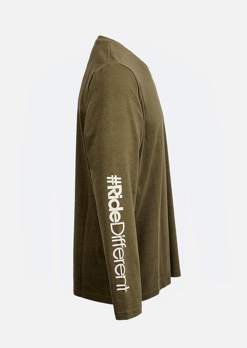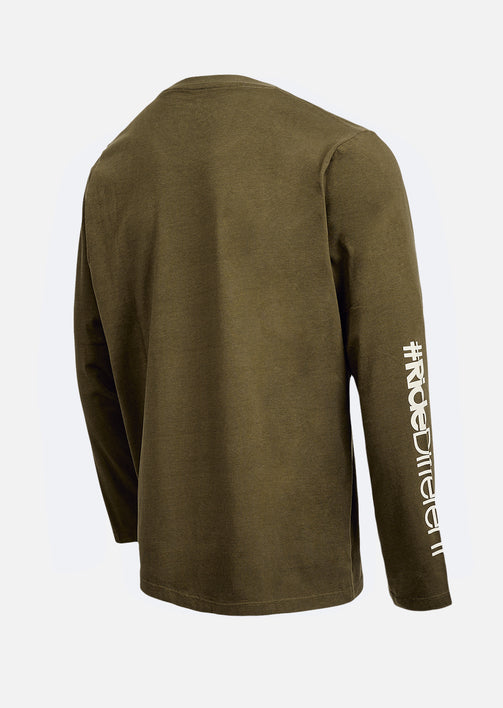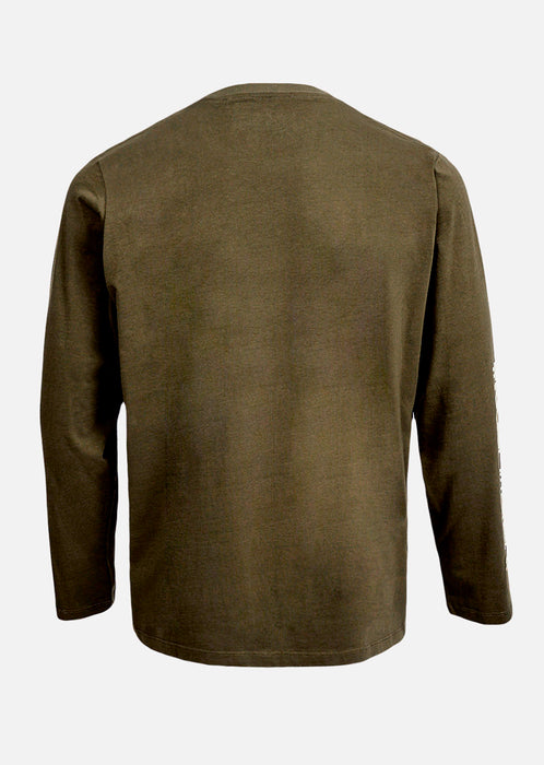 SHOT Sobriété active, confort maîtrisé. Le tee-shirt manches longues Shot Kaki mise sur une teinte naturelle et apaisante, contrastée par un marquage blanc sur la manche pour un effet subtil mais marqué. Sa coupe regular et son coton organique assurent un porté agréable au quotidien, pensé pour bouger librement avec style.