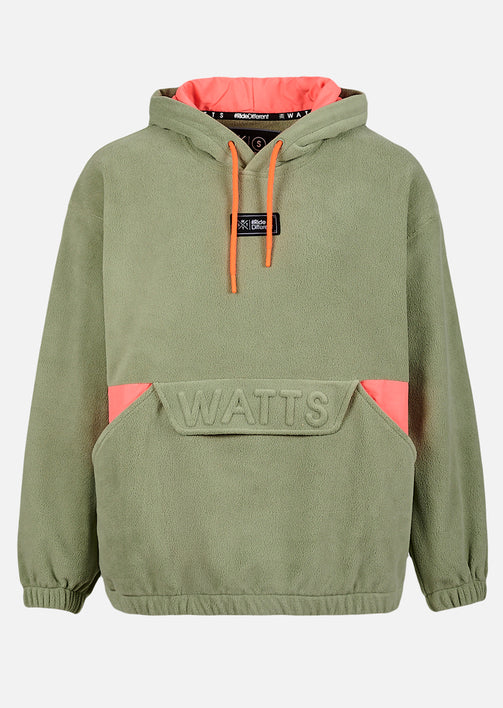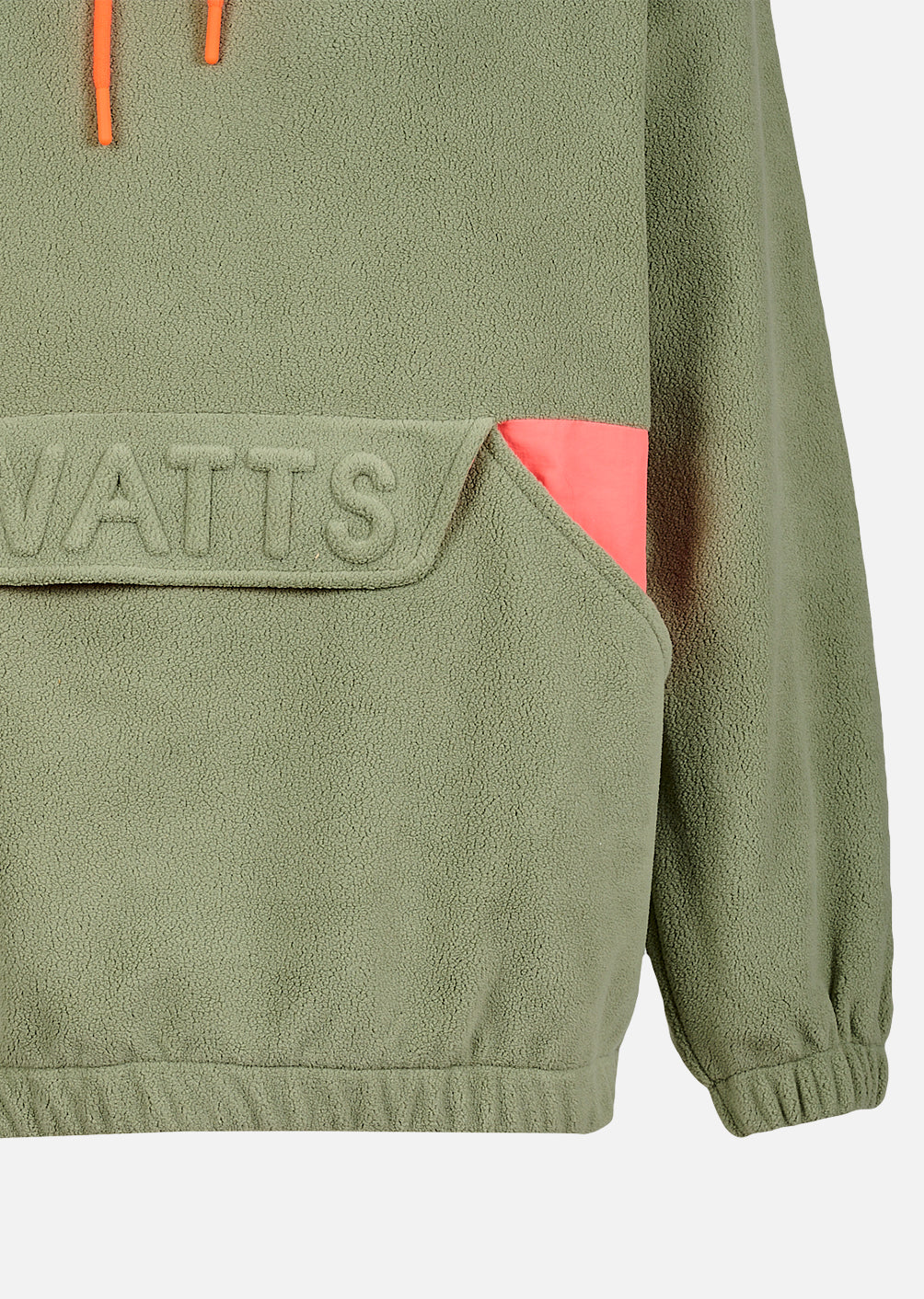 Sans zip, avec une coupe droite épurée, une capuche doublée bien couvrante et une poche kangourou à rabat contrasté, il allie style fonctionnel et inspirations rétro. L’étiquette WATTS discrètement placée et les détails colorés renforcent son look technique affirmé. Une pièce à l’aise entre les pistes, les sentiers et les rues, pour celles qui veulent bouger avec style sans compromis sur le confort.