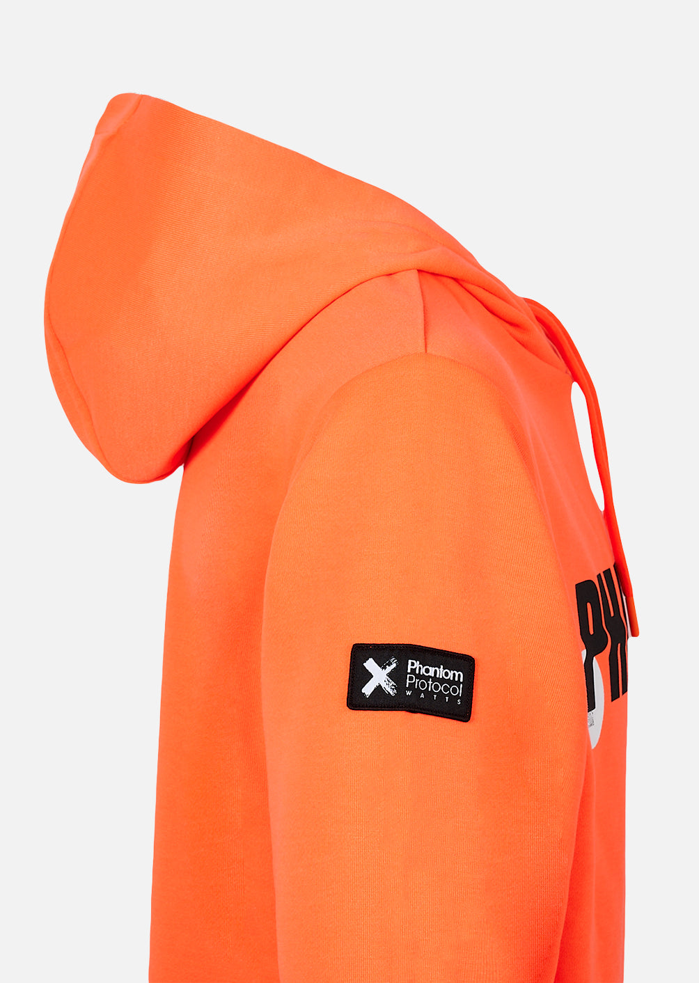 Le X-FALCONS Orange Fluo est une pièce radicale, pour celles et ceux qui ne négocient ni leur style ni leur énergie. Ultra-saturé, ce hoodie capte la lumière et ne la lâche plus. Le logo Phantom, noir charbon, claque au centre comme un rappel à l’ordre dans ce déluge de couleur.