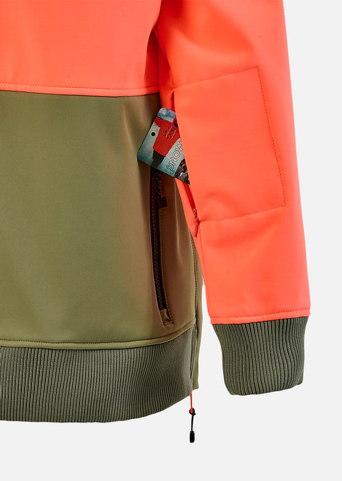 Ses finitions incluent des bords-côtes ajustés, des poches zippées pratiques, une capuche enveloppante et des patchs contrastés pour renforcer le look technique. Parfaite pour le snowboard freestyle, le ski backcountry ou simplement pour arpenter la ville avec style.