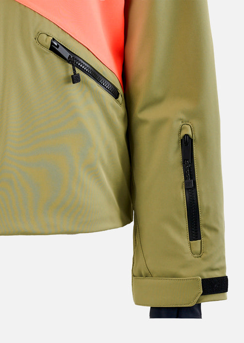 Côté fonctionnalités, on retrouve une capuche réglable en hauteur et profondeur, une jupe pare-neige intégrée, des poches multiples ainsi que des zips étanches pour un usage intensif. Avec son style unique et sa construction robuste, la X-PEAK est taillée pour les skieuses exigeantes qui veulent conjuguer technicité, liberté de mouvement et style utilitaire.