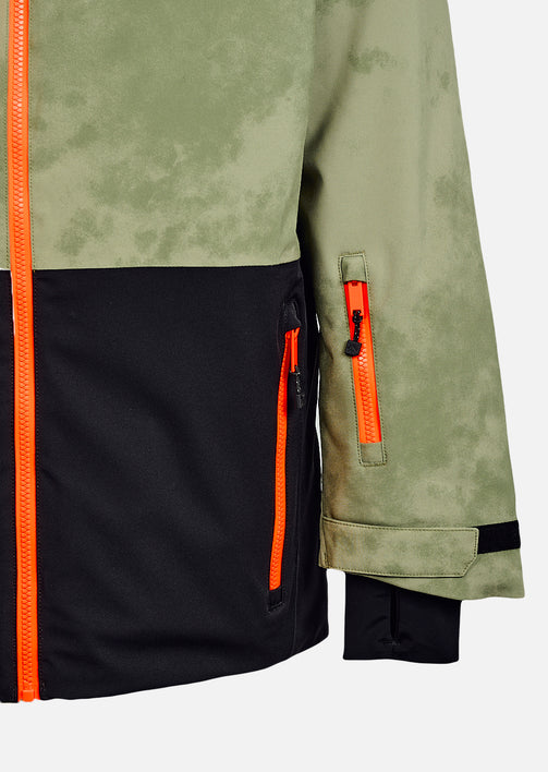 Inspirée des textures de la montagne et des forêts enneigées, la veste X-TEMPER Junior mélange un vert olive tye & dye tendance à un bas noir contrastant. Le résultat : une esthétique unique, à la fois naturelle et ultra contemporaine.