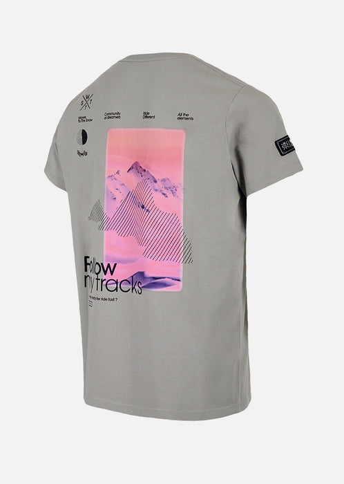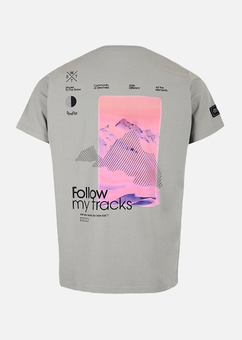 The Carbon Grey TracksT-shirtstands out for its balance between minimalism and strong visual expression. The contrast between the grey base and the pink/orange print creates an urban vibe inspired by the great outdoors. Cut from soft and breathable organic cotton, it's perfect for all seasons. With its regular fit and neat finishes, it's a graphic staple to wear without moderation.