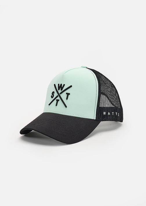 The two-tone Light Green Tribe cap strikes a subtle balance between brightness and understated style. Its brightly colored front panel adds a touch of freshness while remaining controlled, while the matte black visor and matching mesh anchor the design for a more structured look.