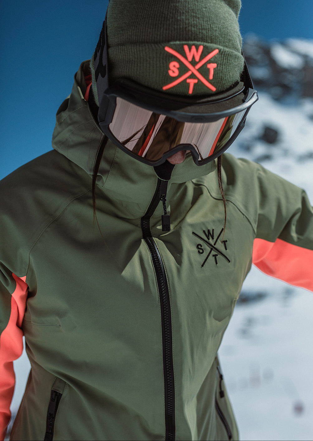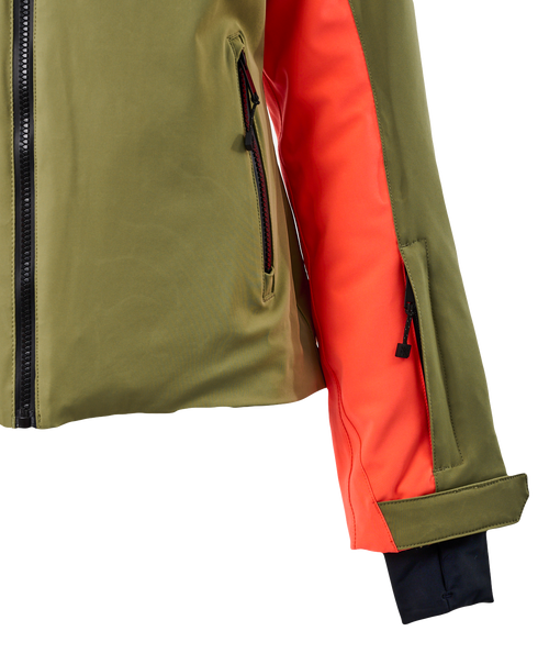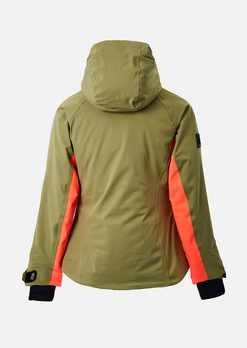 The X-ICES Olive ski jacket captivates with its contrasting personality. Far from conventional styles, it blends the understated elegance of a deep khaki with the vibrancy of a bright neon pink, creating a unique and balanced look. This visual contrast reflects what this jacket embodies: a fusion of natural elegance and a distinctly sporty spirit.