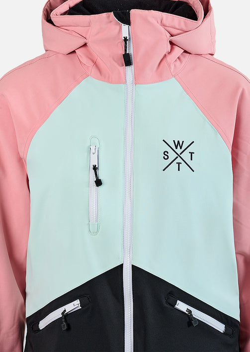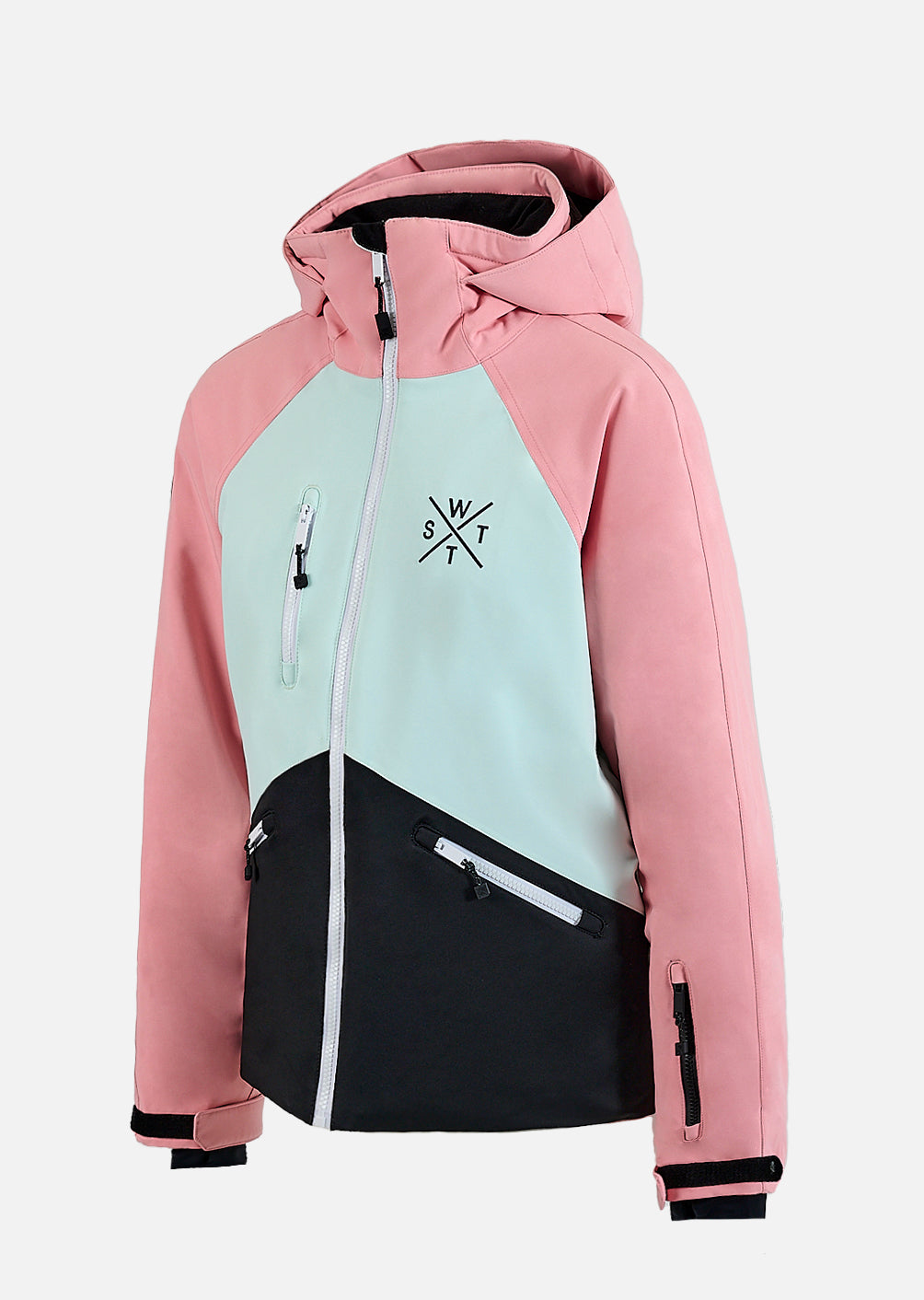 Designed for active skiers, its stretch construction allows for fluid and unrestricted movement. An adjustable wraparound hood, integrated powder skirt, and underarm ventilation complete its technical features. The X-PEAK is the perfect compromise between pastel style and alpine performance, for those who want to ski with style and confidence.