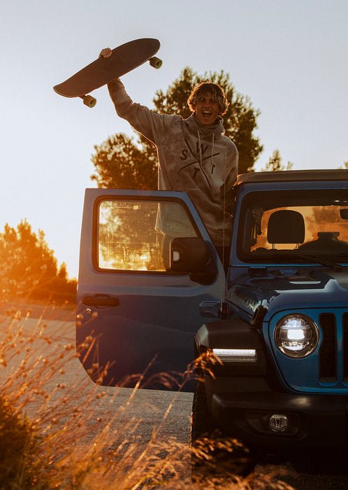 The Light Grey Tie Dye version of the X-Track infuses a calming and natural look, ideal for those who prefer visual softness without sacrificing style. Each sweatshirt is unique, thanks to its subtle tie dye effect.