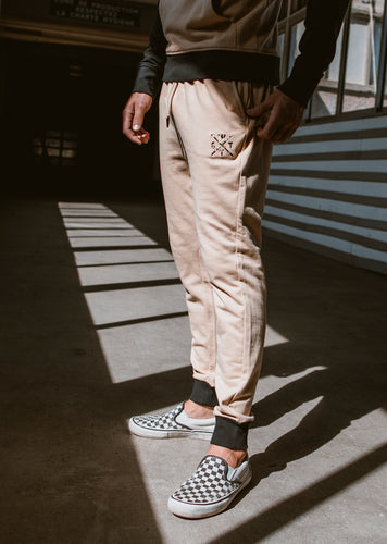 Discover our X-Marker Beige & Black jogging pants for this season. This unisex jogging suit is suitable for all body types. It is partly made of recycled polyester, to respect the environment. These jogging pants will be ideal for staying at home or doing sports with their breathable material. Its unbrushed fleece material also allows the jogging to be pleasant and light to wear. It is equipped with an easy drawstring, two pockets on the front and a patch pocket on the back. The combination of beige and black makes these jogging pants super trendy.