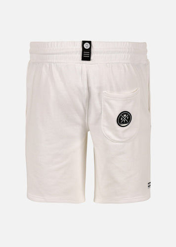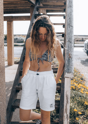 The Venice White shorts are the must-have of the season. 2 in 1 you can wear it for sports as well as for an evening with friends. The polyester in the shorts comes from recycled bottles in order to be environmentally friendly. These Bermuda shorts made from 60% cotton and French Terry will bring you softness and lightness to be super comfortable. It has several pockets and a ribbed belt with a drawstring at the waist. Its fitted cut, the WATTS patch and the decorative stop point on the bottom side give the shorts an ultra trendy look.