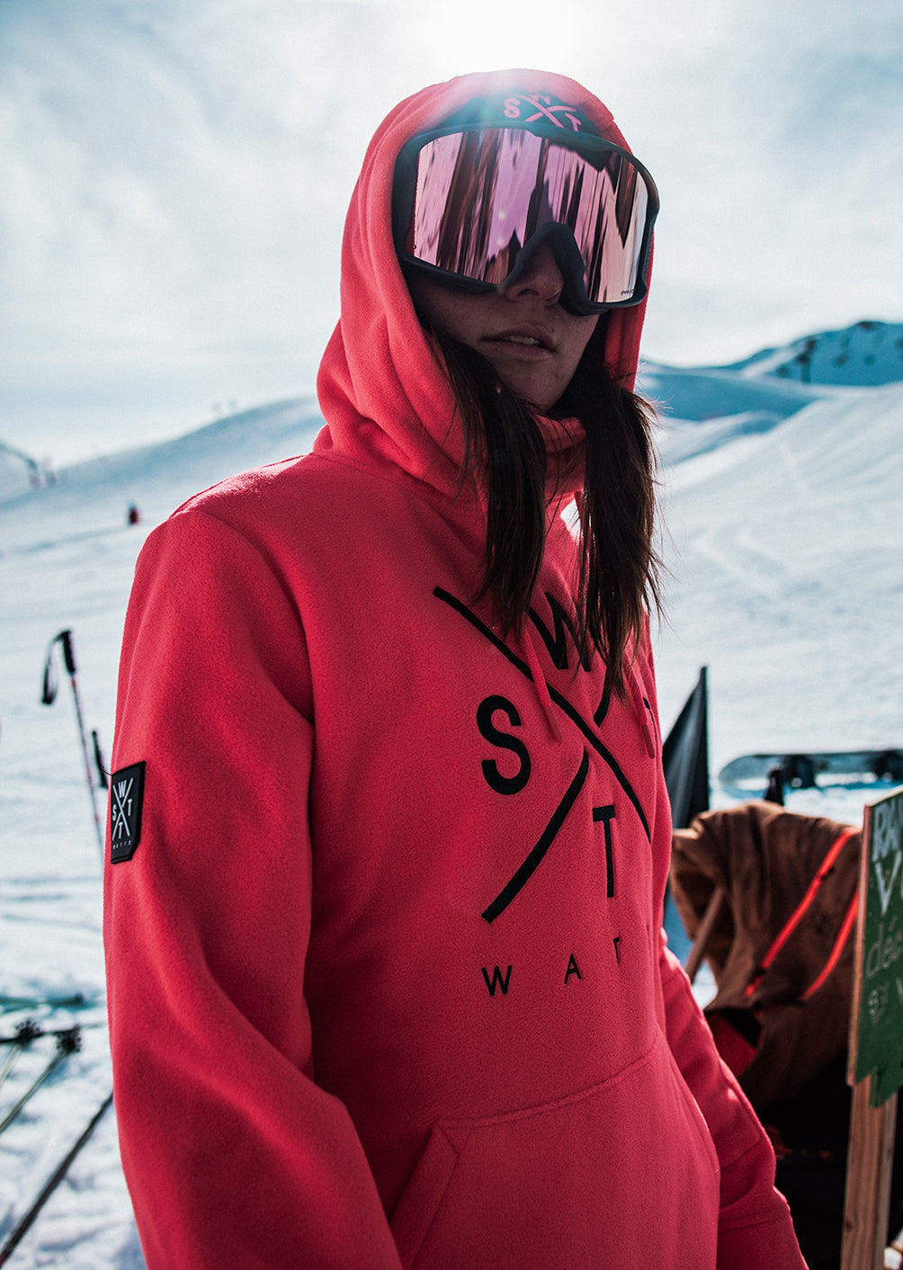 The X-Track Fluo Pink fleece sweatshirt is going to be one of our iconic sweatshirts. This piece is made from 70% recycled polyester. This hoodie is very pleasant to wear thanks to its fleece material which will protect you from the cold all winter long. It has been designed with a wide cut and breathable material so that you are comfortable in all situations. This fleece sweatshirt offers you a street look with the symbolic neon pink color of WATTS.