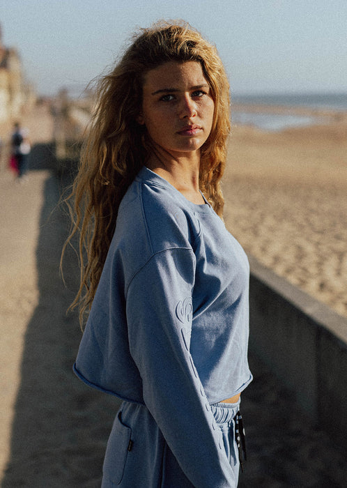 sLe Sweat Crop Avalon-Bleu Gris est le pull tendance à avoir pour cette saison ! Sa matière douce et agréable sera un bonheur à porter. Ses détails d'embossage sur les manches apportent une touche de modernité à cette pièce intemporelle tout en mettant en avant la marque avec discrétion. Que ce soit dans un tenue de ville ou pour aller rider ce pull crop deviendra l'indispensable dans votre dressing. En version crop, il s'associe parfaitement à un bas taille haute pour une tenue street ou alors même pour vos sorties sportives. Sa couleur pastel égayera vos tenues pour un look ultra tendance. Un sweat doux et léger soucieux de l'environnement puisqu'il est constitué à 30% de polyester recyclé & 70% de coton pour plus de confort.