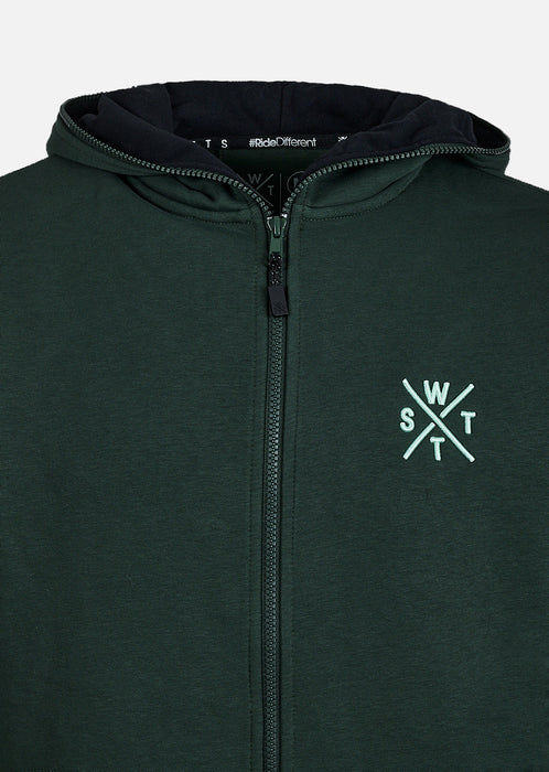 BLUNT Profondeur de ton, technicité discrète. Le sweat zippéBlunt Vert Sapin joue la carte du calme visuel et du style ancré. Sa teinte sombre mais vibrante apporte une vraie intensité à ce hoodie zippé, parfait en layering comme en pièce centrale. Toujours aussi respirant grâce au French Terry, il combine confort naturel et fibre recyclée pour un sweat plus responsable. Le zip pleine longueur vous permet de l’adapter à toutes les situations. Patchs, logo brodé et étiquette signature en font une pièce complète. Un essentiel tout-terrain, pensé pour suivre le rythme sans jamais perdre en allure. Solide, sobre, mais jamais ennuyeux il s’inscrit dans une approche durable du style.