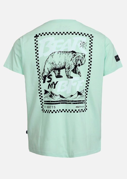 À l’arrière, le visuel “The Bear” ajoute du relief à l’ensemble : un clin d’œil à la puissance tranquille, taillé pour ceux qui ont le flow naturel. Sa coupe regular et son coton organique offrent un fit impeccable et un confort aéré.