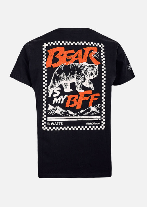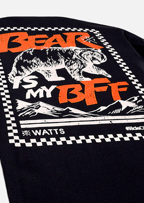 Le t-shirt Budy Noir coche toutes les cases du tee incontournable : couleur passe-partout, coupe droite, confort haut niveau. Mais son vrai plus, c’est son dos : le motif “The Bear” y déploie toute sa puissance graphique, façon marqueur visuel à part entière.
