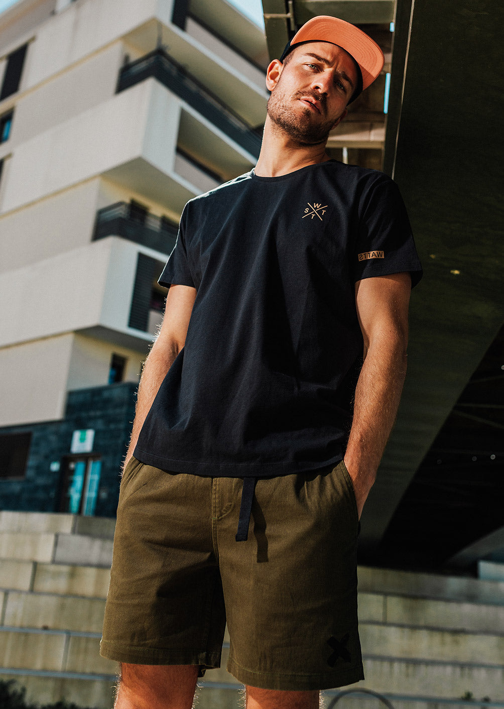 - Patch tissé WATTS au-dessus de la poche dos, côté droit