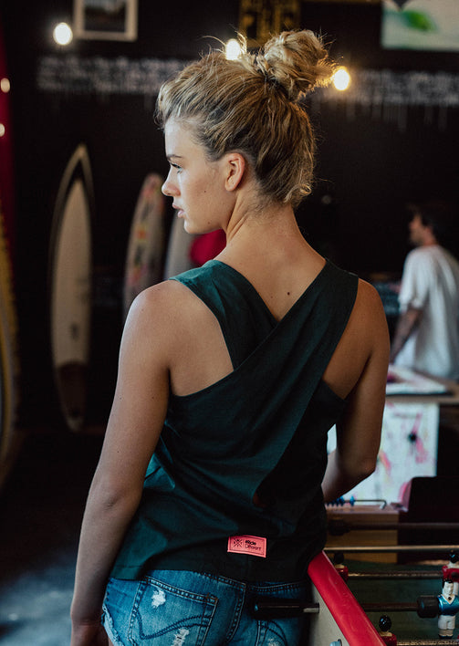 0New-in : le débardeur Kallora en Vert Sapin. Cette nouveauté deviendra l'un de vos basiques avec une touche subtile mode grâce à son dos croisé. En coton organique, il vous apporte aisance dans vos mouvements et toucher agréable pour vos sorties sport ou alors au quotidien dans vos tenues de ville. Le logo central du débardeur est un rappel à la marque et son univers ride. Adoptez-le sans plus attendre !