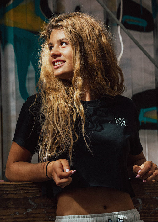 Découvrez le T-shirt crop top Malua Noir, en coton organique, votre nouveau basique. Ce modèle à manches courtes est idéal pour accompagner vos tenues sportives, notamment avec un short durant les journées ensoleillées, ou encore pour vous détendre sur la plage pendant votre cours de surf, par-dessus votre maillot de bain. Conçu en coton biologique, il présente une coupe décontractée à la taille, pour un look à la fois moderne et relax. Son inscription subtile du logo de la marque sur le côté gauche près du cœur ajoutent une touche de peps mais discrète.