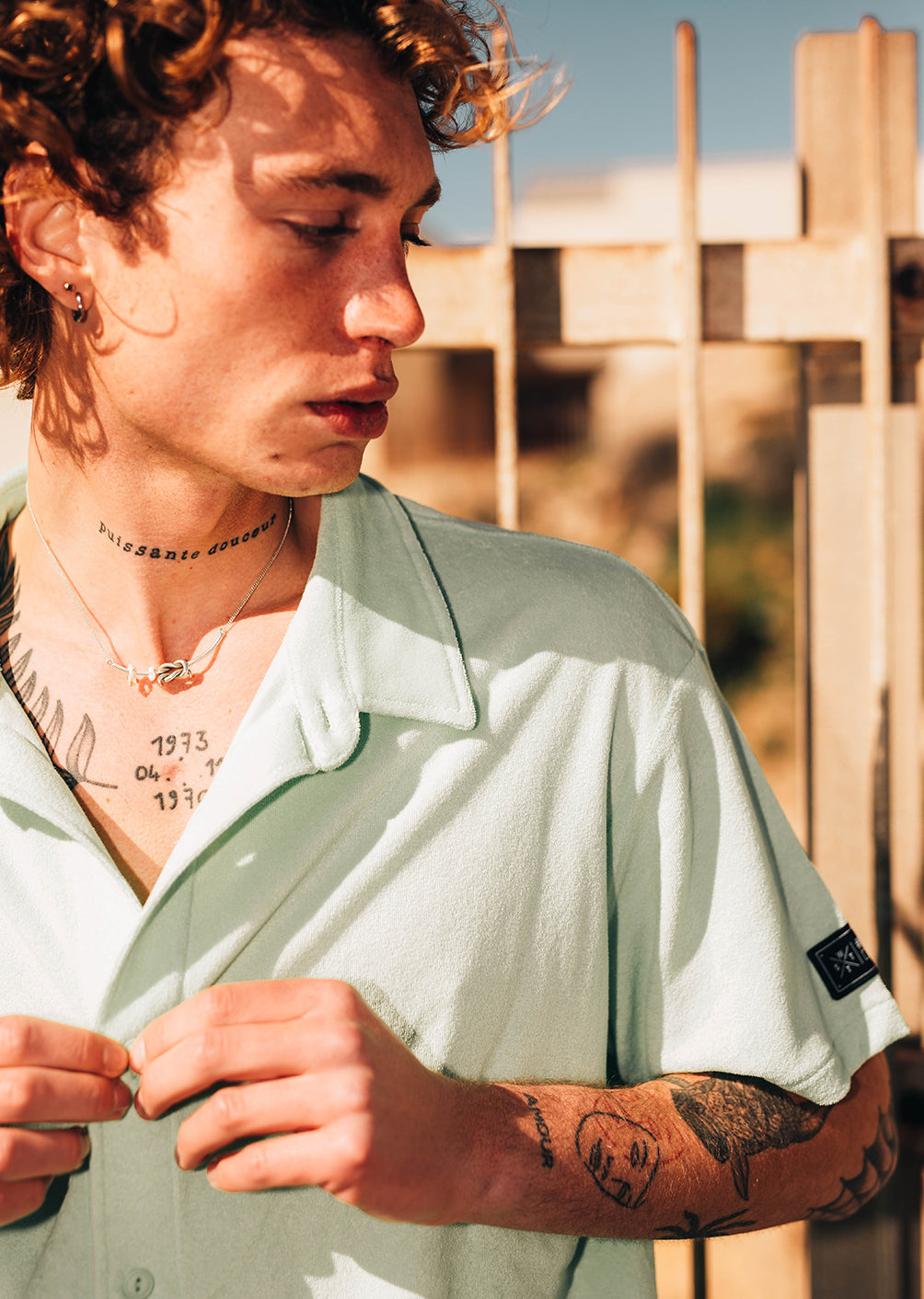 Polyvalente et stylée, cette chemise Vert Pastel s’associe facilement à un jean clair, un pantalon cargo ou un short en lin, pour un look masculin à la fois relax et moderne. Idéale pour les week-ends, les sorties entre amis ou les balades au bord de l’eau, elle incarne parfaitement l’équilibre entre streetwear, surfwear et fraîcheur printanière.