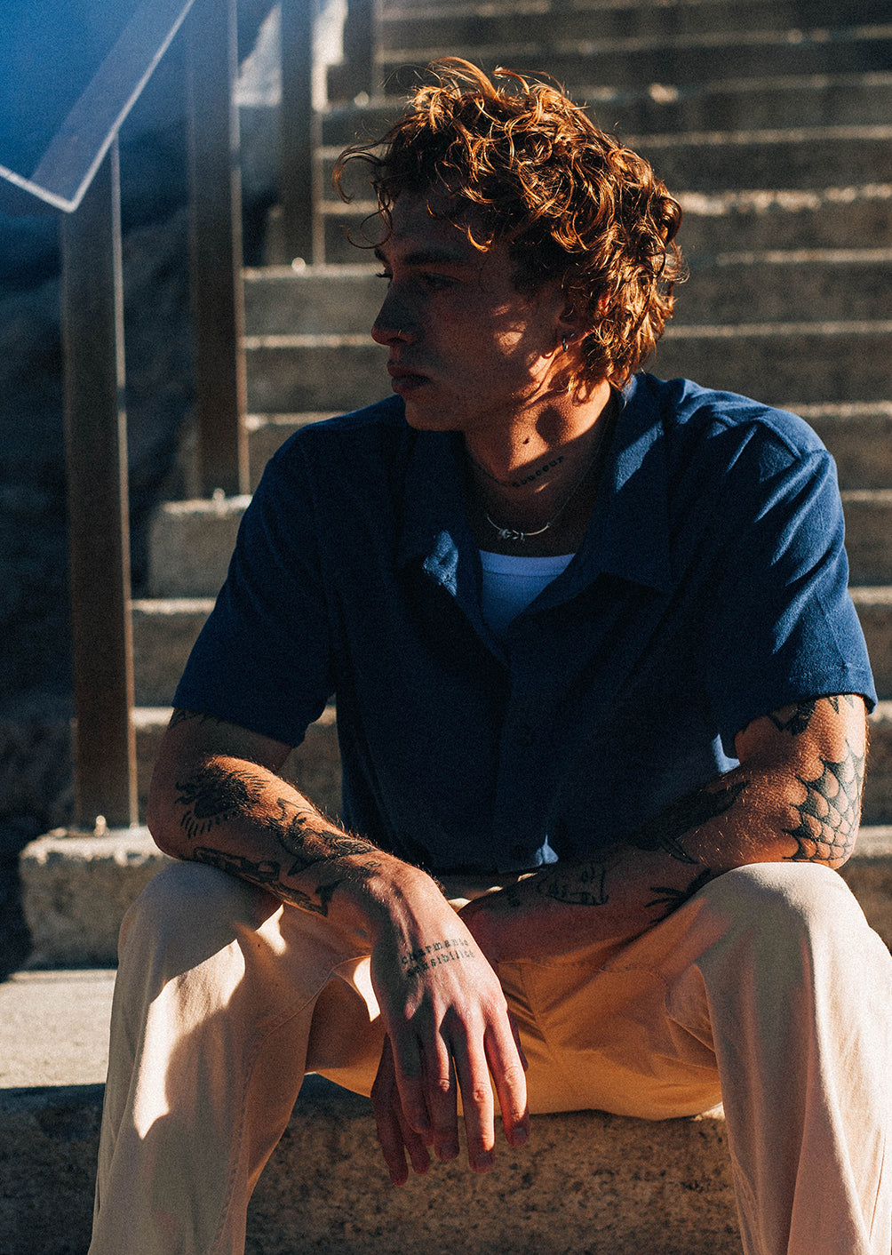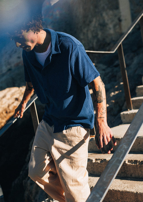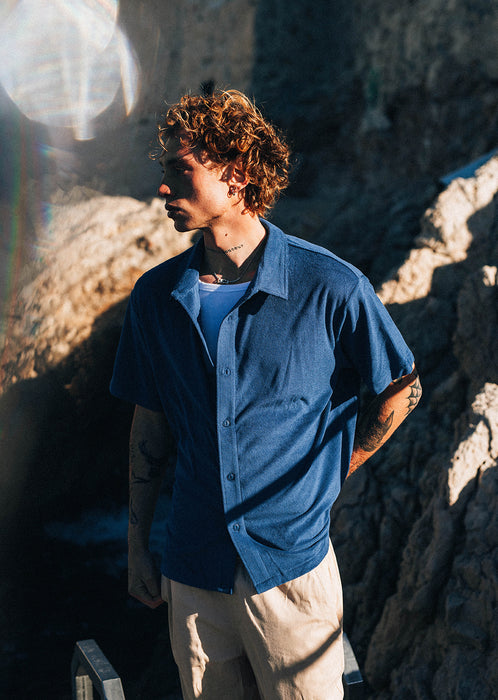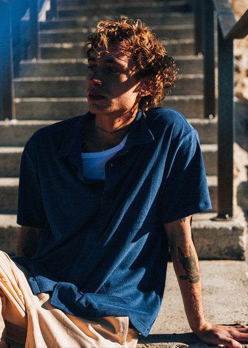 Polyvalente et tendance, cette chemise Vintage Navy se marie parfaitement avec un jean clair, un pantalon cargo ou un short, pour un look masculin, urbain et décontracté.