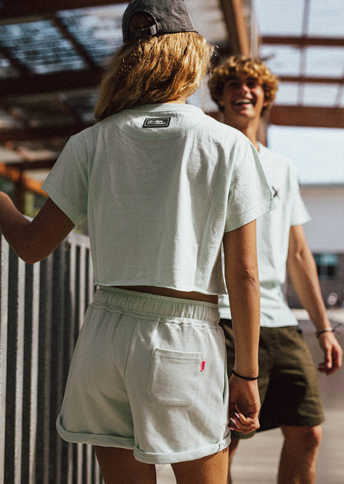 Esthétique et sporty à la fois, le Short Noosa Vert Clair est votre nouvel indispensable de saison. En matière recyclée, son design est moderne et épuré, il sera facile à associer à vos tenues estivales. Sa taille élastiquée avec cordons lacets logotés pour un ajustement personnalisé vous rendront le toucher confortable, sa forme large aux cuisses vous donnera un look tendance mais surtout une liberté de mouvement dans vos activités sportives ou balade. Léger, il se porte en association avec un crop top pour un ensemble estival assorti stylé. Poches latérales pour vos rangements.