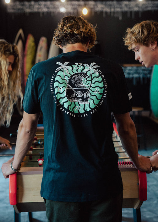 Le T-shirt Numb Noir est l'indispensable pour tous les passionnés de surf et de style décontracté. Conçu en coton organique, il allie confort, durabilité et respect de l’environnement. Sa coupe décontractée et sa matière douce en font un choix idéal pour vos journées sur la plage ou après une session de surf. Au dos, un design exclusif avec une magnifique vague turquoise, life is short, ride fast!