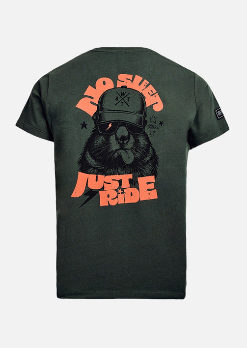 Avec sa couleur Vert Sapin et son visuel puissant à l’arrière, le tee-shirt Overmint incarne l’esprit des passionnés de glisse, de ride ou d’adrénaline. Conçu en coton organique, il offre une coupe regular confortable. Le graphisme orange "No Sleep Just Ride" sur fond foncé crée un contraste saisissant, tandis que le logo minimaliste à l’avant apporte une touche de sobriété. Un tee-shirt stylé et responsable, parfait pour affirmer votre lifestyle.