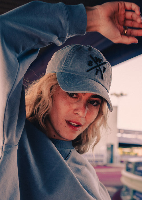 - Sur le devant : Tissu uni en Coton CANVAS avec une teinture effet usé, broderie WATTS 3D + visière