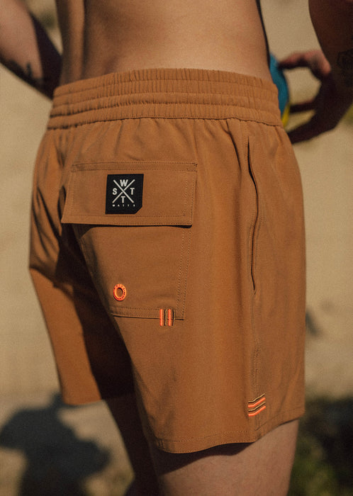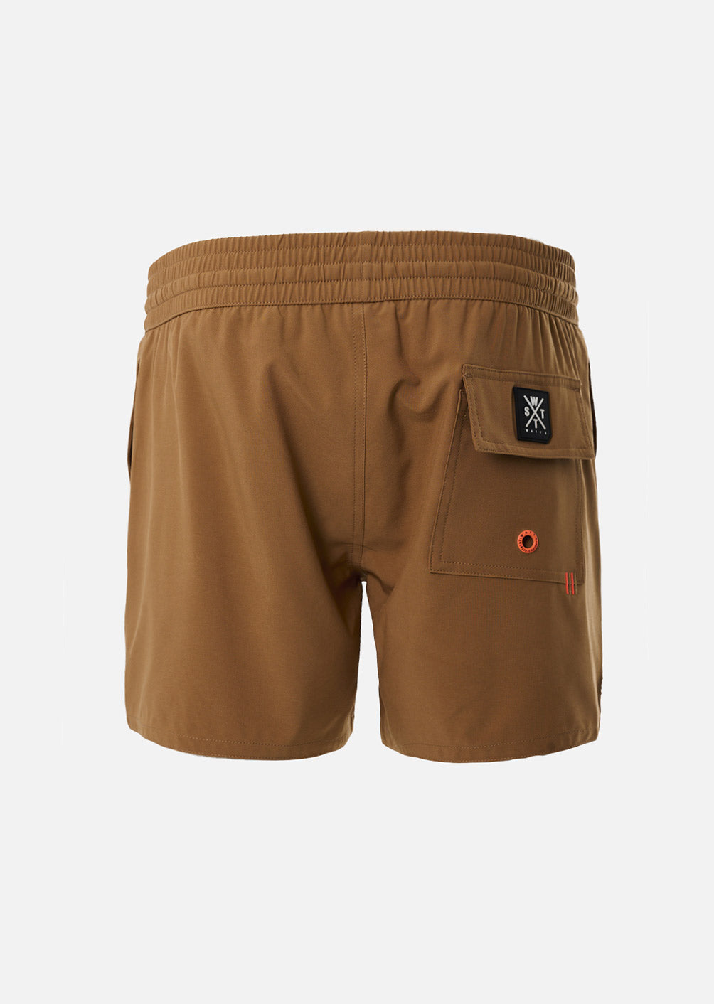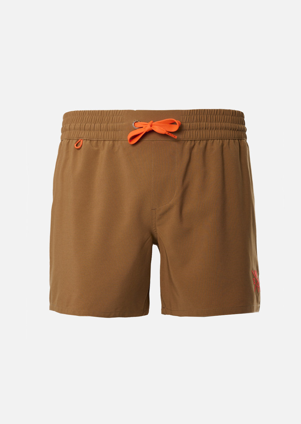 Du style même en tenue de plage, c'est possible avec le Short de Bain R-Coolz Marron Tabac ! A la croisée des chemins entre sobriété et originalité, son tissu extensible vous assure une totale liberté de mouvement, tandis que la ceinture élastiquée et le cordon de serrage garantissent un ajustement idéal.. Léger, à séchage rapide, résistant à l’eau salée et au chlore, ce short est aussi pratique que stylé. Sa composition à partir de polyester recyclé en fait également un article écoresponsable, en plus de quoi il est pensé pour être durable.