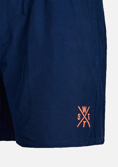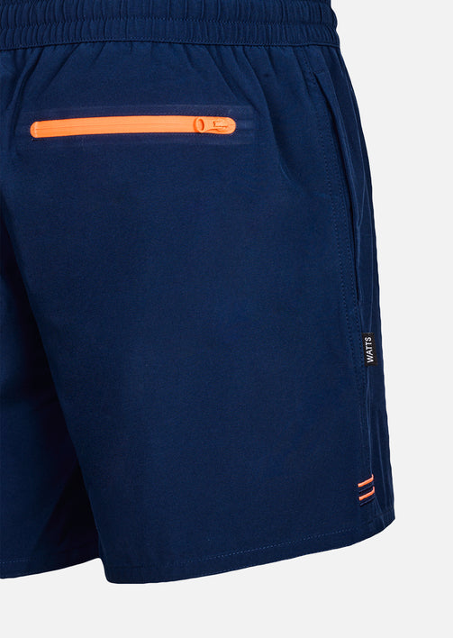 Short de bain RXCOOLZ ink bleu Profondeur du bleu, signature orange WATTS
