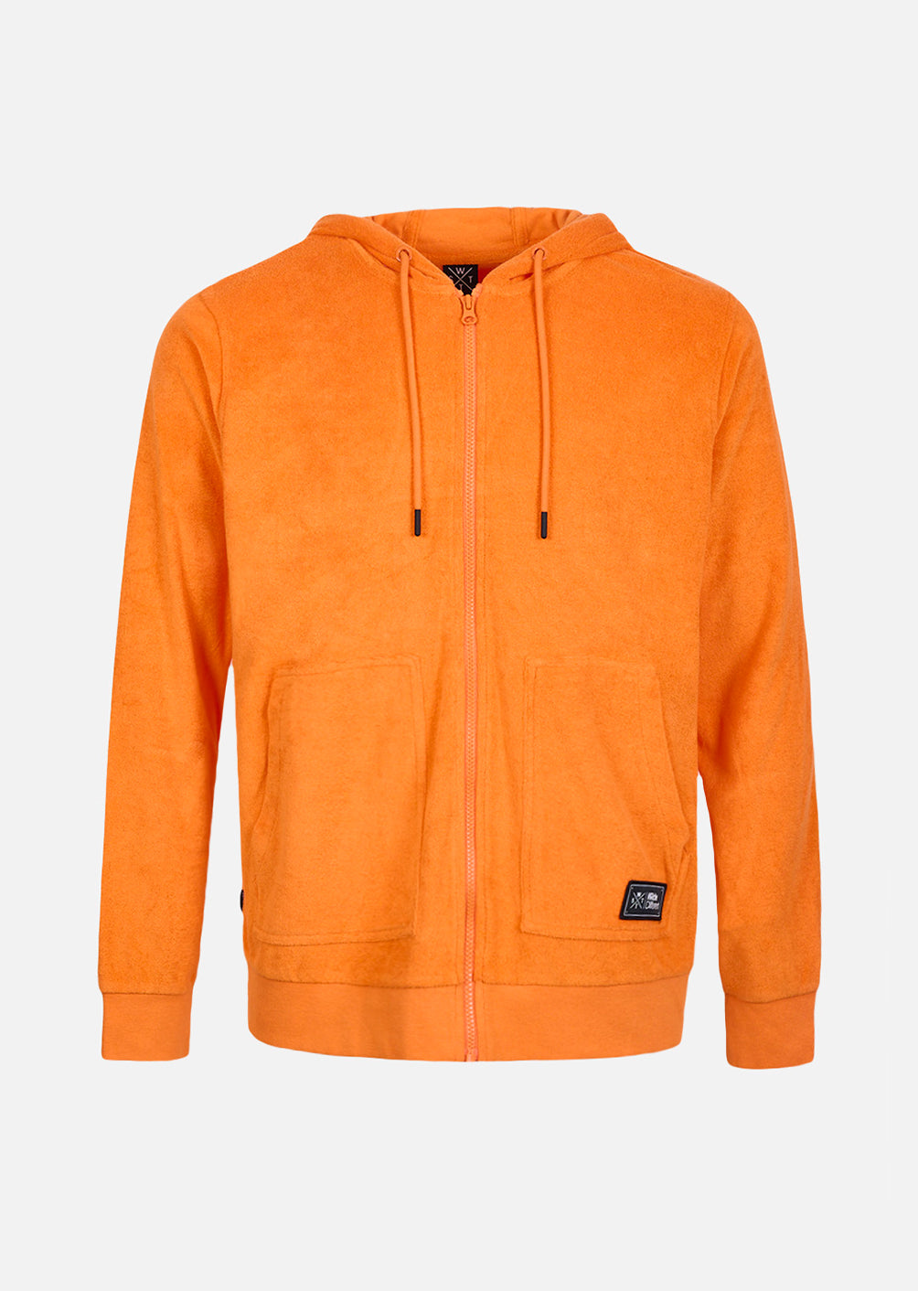 - Patch tissé en bas de la poche kangourou gauche