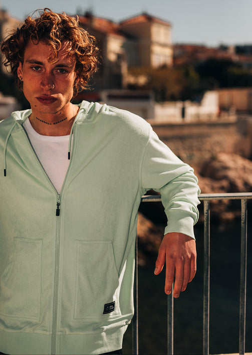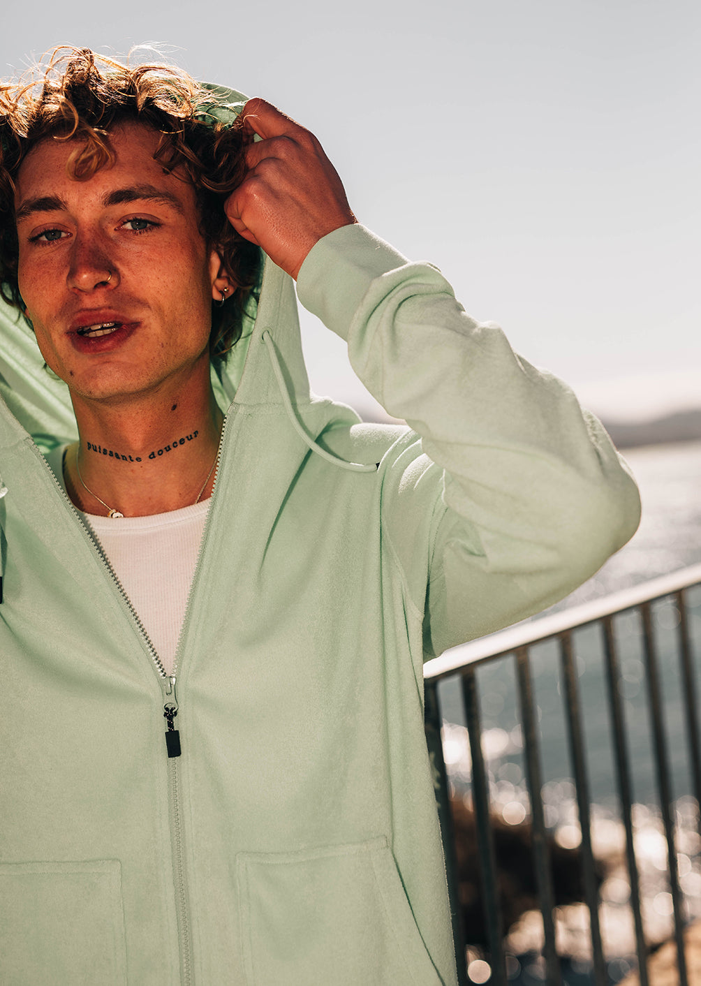 Apportez une touche douce et tendance à votre vestiaire avec le sweat à capuche UPWARD en coloris VERT PASTEL. Sa teinte lumineuse modernise instantanément un look casual tout en restant facile à associer.