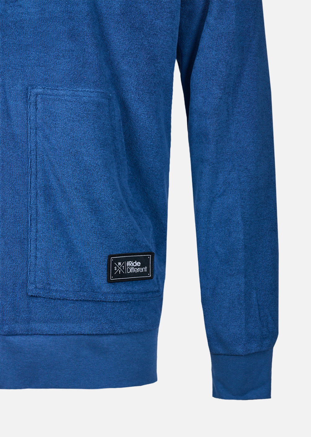 - Patch tissé en bas de la poche kangourou gauche