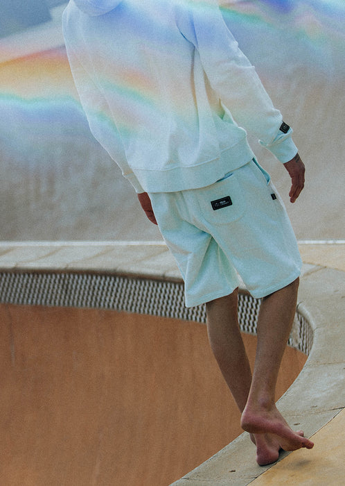 VENICES – Bermuda French Terry Ice Blue Adoptez la fraîcheur du Ice Blue pour illuminer vos looks estivaux avec modernité. Le bermuda VENICES se décline dans une teinte Ice Blue claire et lumineuse, idéale pour la saison. Facile à associer, ce coloris apporte une touche dynamique à vos silhouettes street tout en conservant une esthétique épurée et actuelle.