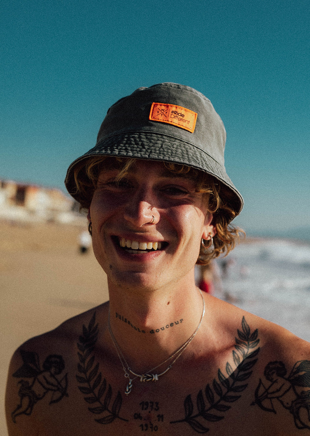 - Sur le devant de chaque face : Ecusson "Ride different"