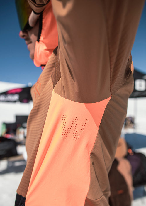La X-POWDER affiche un style rétro inspiré des teintes naturelles, mêlant marron tabac, noir profond et orange fluo pour une allure à la fois outdoor et urbaine.
