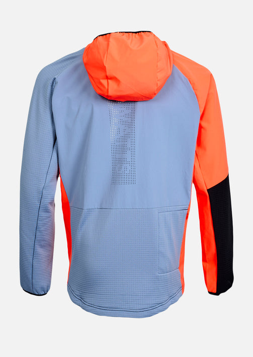 La Veste sous couche technique X-POWDER combine technologie textile et esthétique tranchée. Sa teinte bleu gris contrastée par des empiècements orange fluo et noirs apporte une vraie personnalité à cette seconde couche thermique.