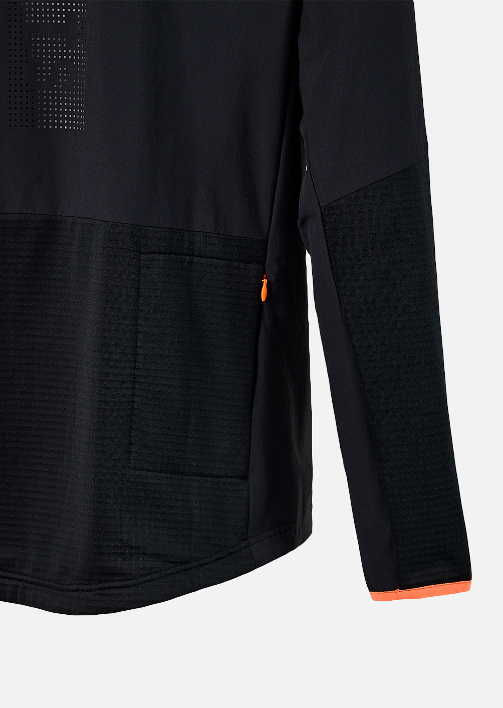 Son coloris noir intégral lui donne un look épuré et moderne, parfaitement adapté à une pratique intense du ski, du snowboard ou des sports outdoor. Elle se porte seule en intersaison ou en mid-layer sous une veste technique en hiver.