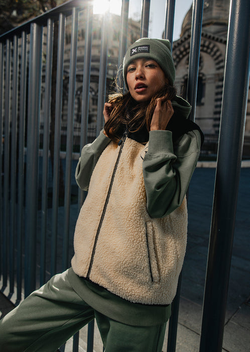 Avec sa teinte Beige et ses découpes contrastées, le gilet sherpa X-Row s’impose comme un incontournable de mi-saison et d’hiver. Idéal pour superposer sur un hoodie ou sous une parka, il conjugue chaleur, respirabilité et style affirmé.