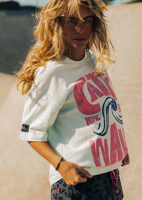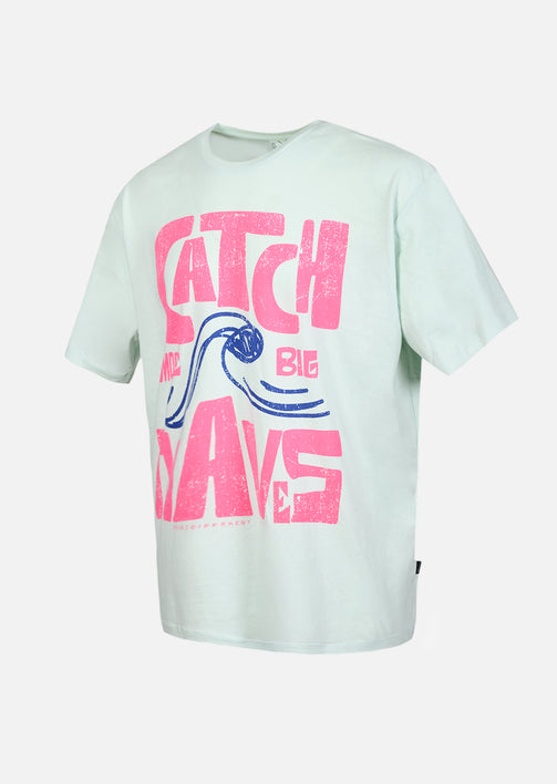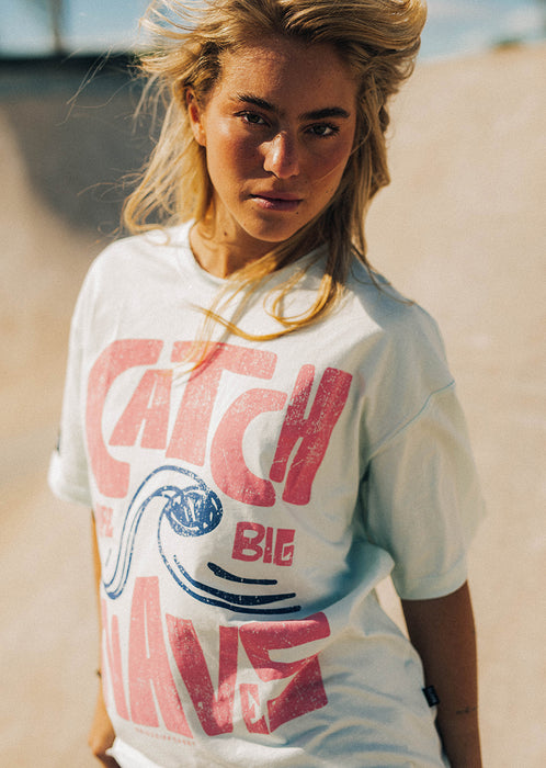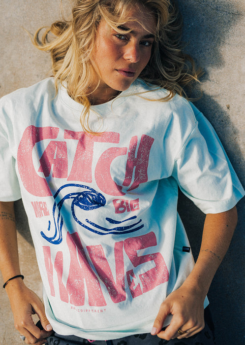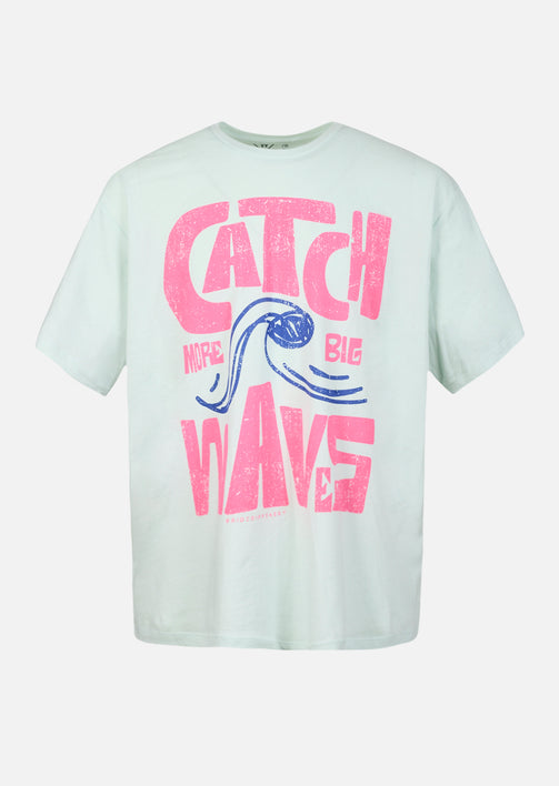 Avec son coloris bleu doux inspiré des eaux calmes et profondes, le T-shirt XWAVES apporte une vraie sensation de fraîcheur au vestiaire street. Cette teinte lumineuse met en relief le large visuel rouge “Catch Big Waves” et son illustration centrale, créant un contraste puissant qui capte immédiatement le regard.
