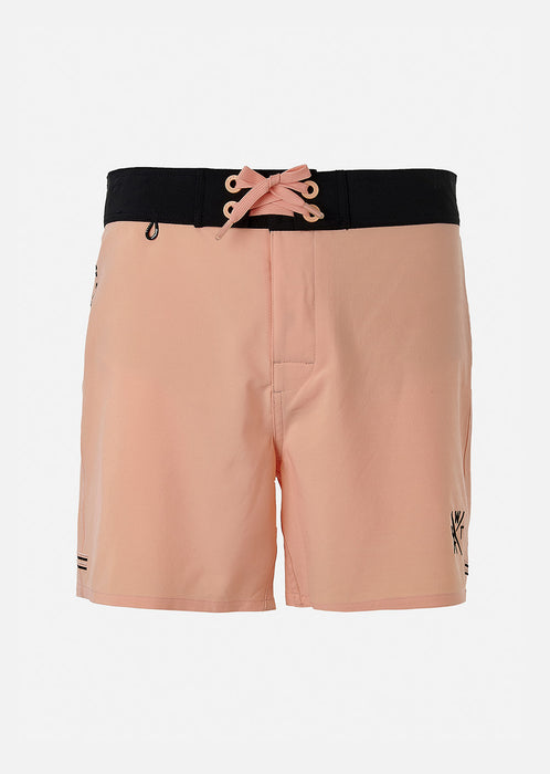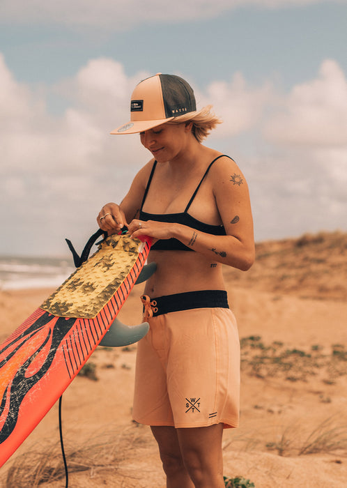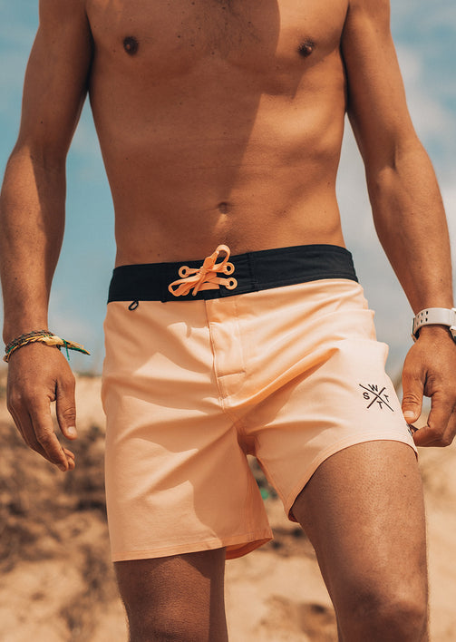 Opt for theCoolx Peach swimsuit. Made of 4 Ways Stretch material and its semi-elasticated waistband at the back, the Coolx can adjust perfectly as you wish. Its drawstring at the waist will allow you to adapt it to your body. Perfect comfort guaranteed thanks to the integrated Slip Mesh. This swimsuit provides all the necessary technical features such as quick drying and stretchy fabric. It will be very useful and classy to be able to take the wave without worries. Accompanied by its small black and white details embroidered on the sides of the swimsuit. Without forgetting our embroidered logo on the front and the patch on the back pocket to make it even more trendy!