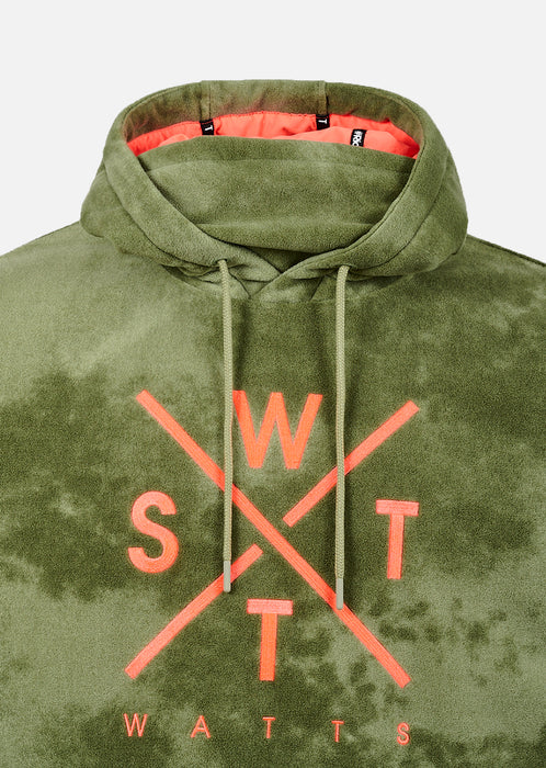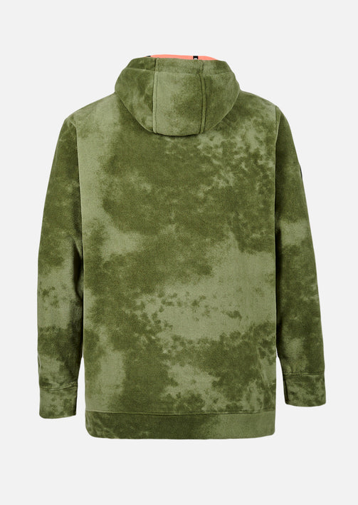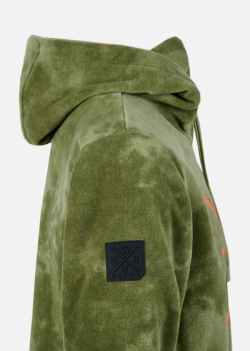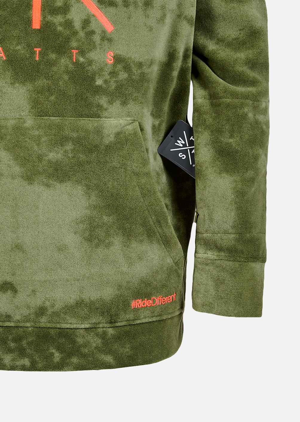 X-TRACK Organic with a relaxed outdoor look. With itsuniqueOlive Tie & Dye , this sweatshirtX-Trackbrings an even more street-ready feel to the outdoor movement. A piece with a casual look, but designed for action and exploration. Technical and stylish, it remains true to X‑Track performance standards: warm and breathable recycled fleece, loose fit, adjustable hood, high collar and thumb loops for optimal support. Ultra-practical, it includes a kangaroo pocket and a zipped “ski pass” pocket, while being enriched with signature details (embroidery, patch, slogan). An inspired piece, designed for escape and adventure, in the city as well as in the great outdoors. Its soft material and bold look make it an ideal ally for those who live outdoors, whatever the weather.