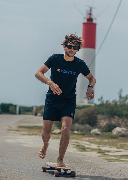 Classic with a touch of color, opt for the WATTS09 Black t-shirt . This t-shirt offers you maximum comfort thanks to its Oeko-Tex® organic cotton. It is both classic with a contemporary cut and a black color. But the WATTS writing in blue on the front of the t-shirt as well as the neon orange logo add a touch of color to give the t-shirt more fun.
