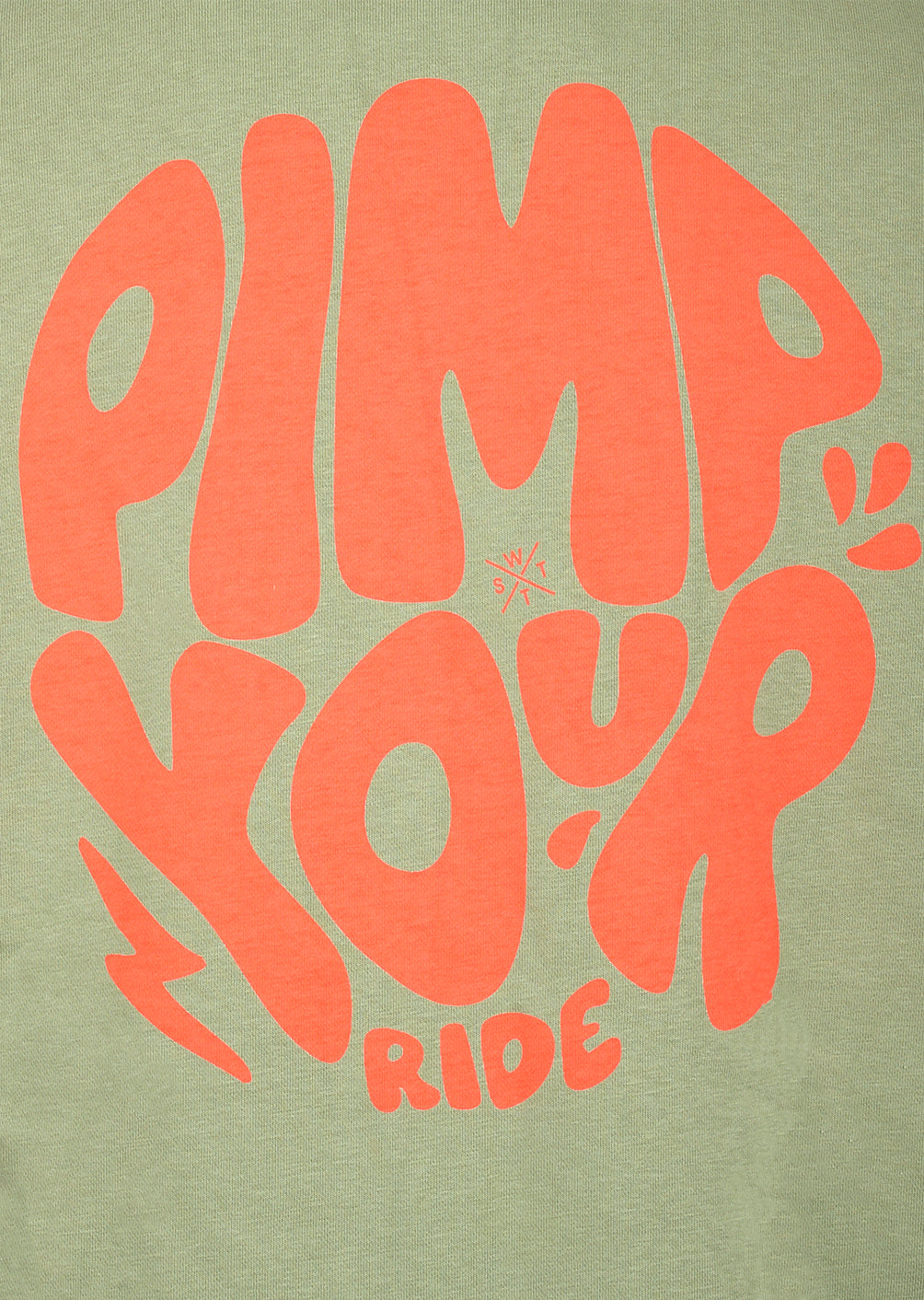 Fabriqué en coton biologique et polyester recyclé, il combine douceur et tenue, pour un port agréable au fil de la journée. Dans le dos, l’imposant motif "PIMP YOUR RIDE" orange affirme son caractère et injecte une dose d'énergie à l’ensemble. Ce contraste se prolonge dans la capuche, doublée de tissu orange fluo, qui offre une protection efficace tout en ajoutant une touche visuelle inattendue.