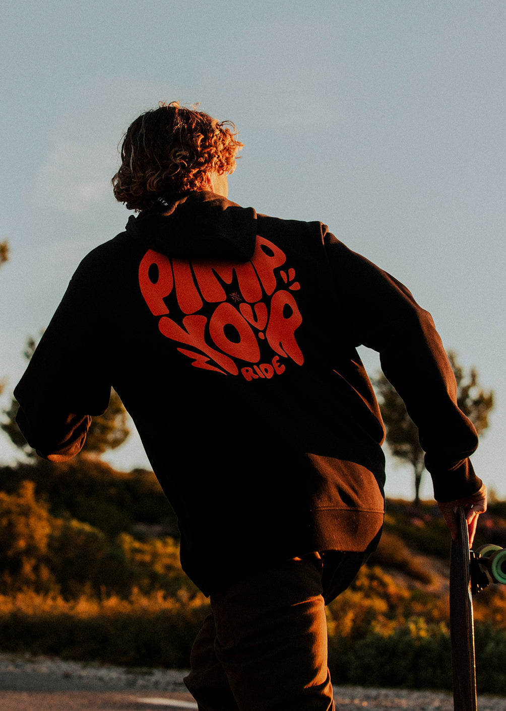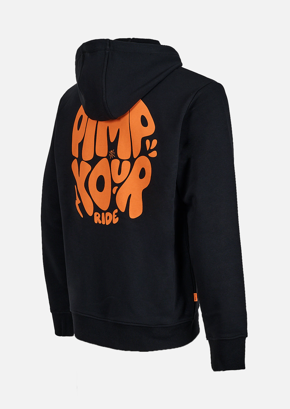 La matière, un mélange de coton biologique et de polyester recyclé, assure chaleur, confort et bonne respirabilité, parfaite pour accompagner un quotidien actif. Au dos, le grand motif "PIMP YOUR RIDE" en orange fluo affirme l’ADN street et le parti pris graphique du hoodie, avec un rendu visuel percutant à chaque mouvement.