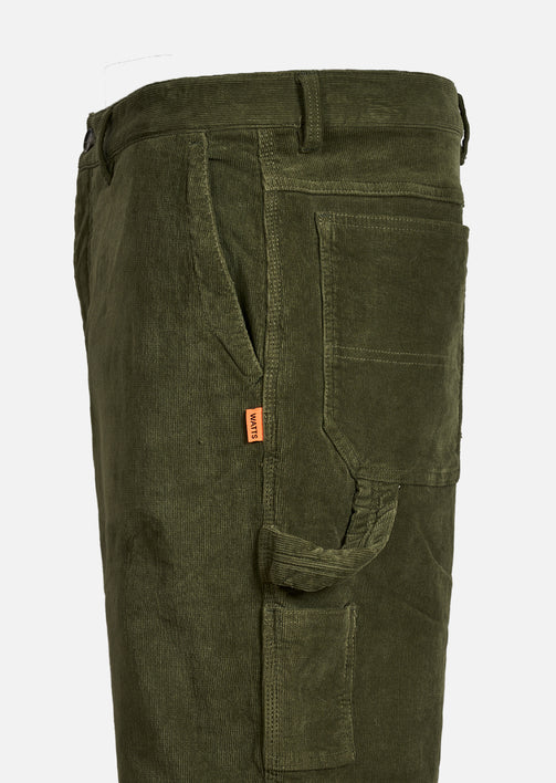 Pratique et pensé pour un usage quotidien, ce bermuda dispose de poches italiennes à l’avant, d’une poche arrière appliquée, et d’un ensemble poches à outils avec boucle porte-marteau latérale, parfait pour un look worker moderne. Les touches WATTS, comme l’étiquette drapeau sur la poche avant droite et le patch tissé centré sur la poche arrière gauche, viennent signer le style avec subtilité.