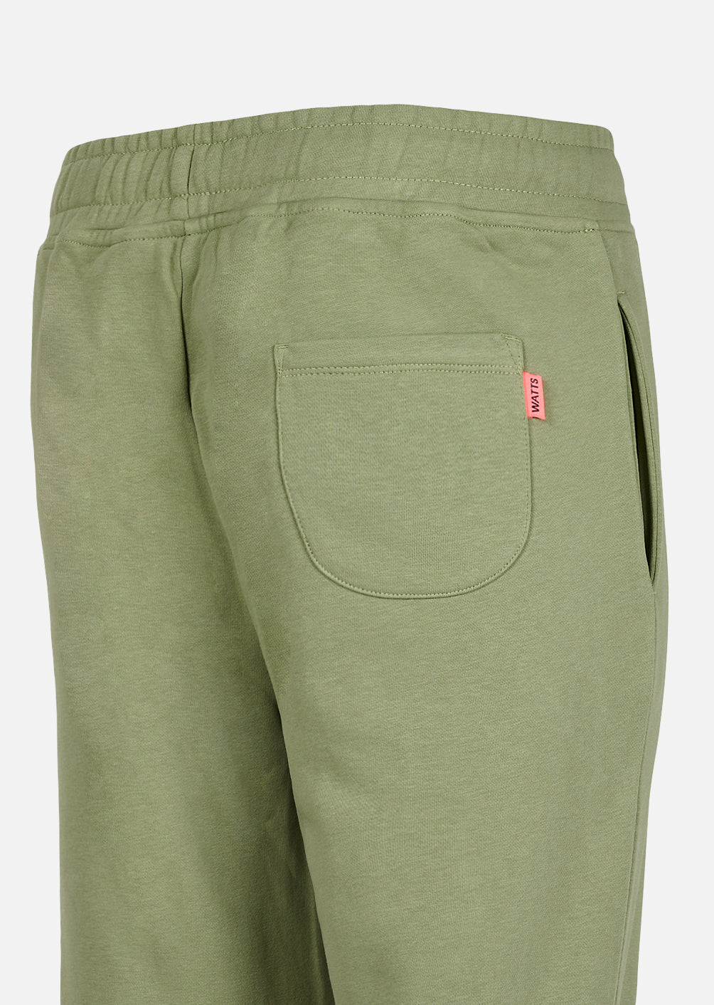 Un logo en relief ton sur ton sur la jambe gauche et une étiquette WATTS cousue sur la poche dos viennent signer ce bas aussi simple qu’efficace.