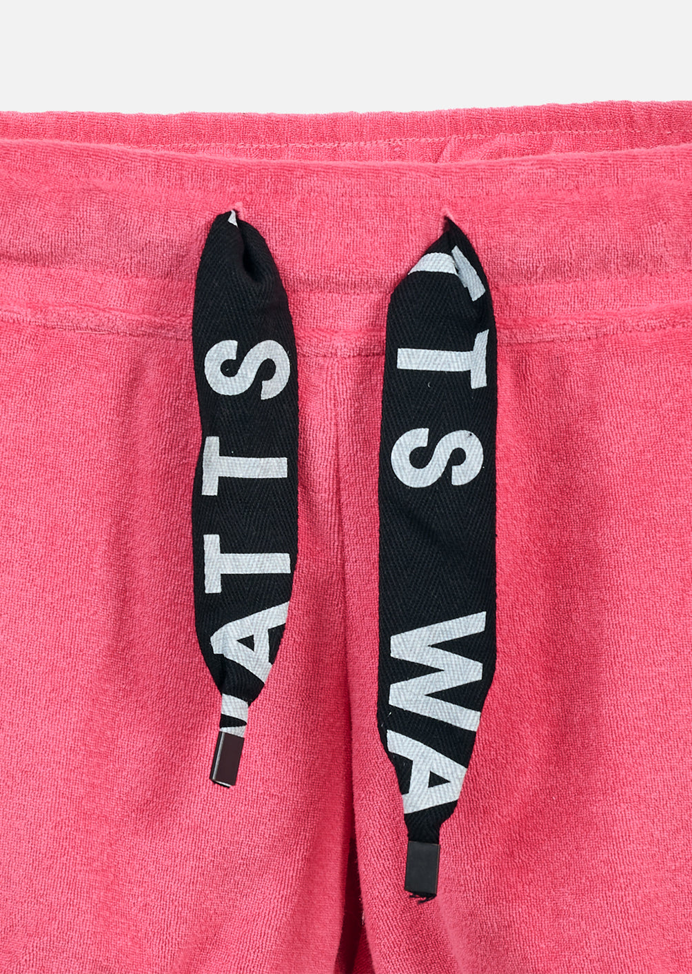 Sa taille élastique épouse naturellement la silhouette et se règle grâce à son lien personnalisé WATTS, véritable détail signature. Les poches latérales intégrées conservent une ligne fluide, tandis que la poche plaquée au dos côté gauche ajoute une fonctionnalité discrète.