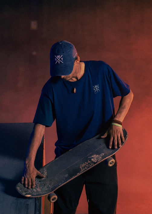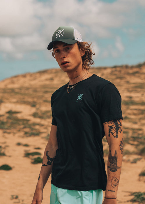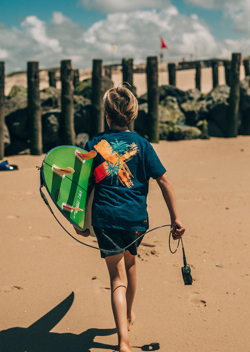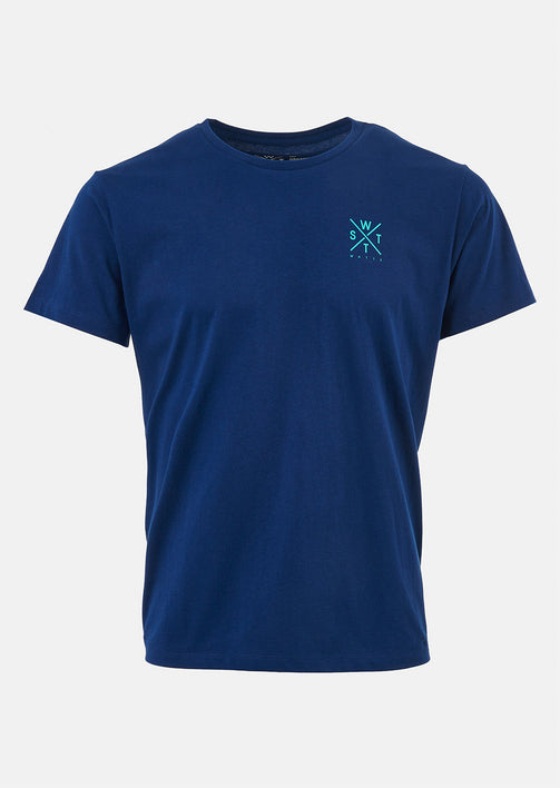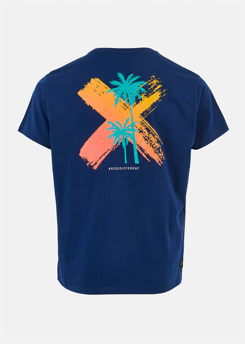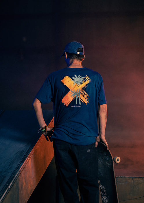 Indémodable, découvrez le tee-shirt Palm Bleu Marine et sa croix de couleur jaune et orange dans le dos. Composé de coton 100% organique, c'est un tee-shirt respectueux de l'environnement. Que vous le portiez à la plage, en ville, dans le skatepark ou bien durant votre sport, il sera plaisant à porter grâce à sa matière respirante pour encore plus de confort et de légèreté. Le logo WATTS en sérigraphie sur le devant habille davantage la tenue. Les palmiers sur le dos vous emmèneront directement en vacances lorsque vous le porterez.