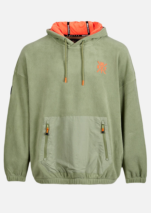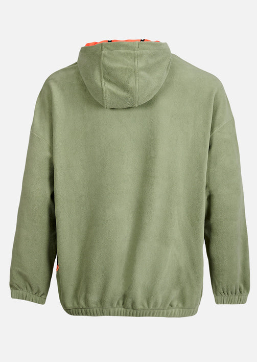 Le hoodie polaire Play Olive associe une teinte organique à un design fonctionnel, pensé pour bouger sans jamais compromettre le confort. Entièrement conçu en polaire recyclée légère, il offre une isolation douce et respirante qui accompagne chaque mouvement, que ce soit en ride, en rando ou en ville.