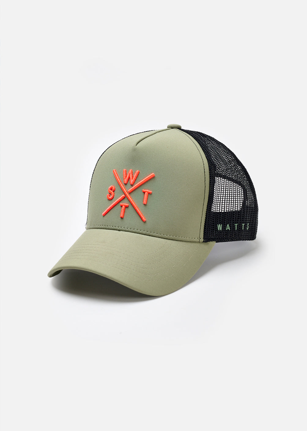 La casquette R-Tribe Olive incarne l’équilibre parfait entre sobriété naturelle et dynamisme affirmé. Son coloris olive profond évoque les paysages sauvages et l’esprit outdoor, tandis que la croix WATTS brodée en orange fluo apporte une touche vive et moderne, signature emblématique de la marque.